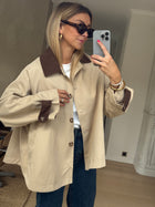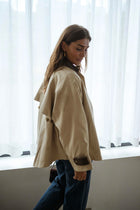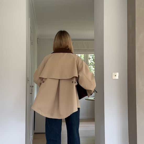 The Noho Jacket is your must-have outerwear for fall — a modern, Parisian-inspired trench coat designed for effortless everyday style. The cropped, boxy silhouette makes it ideal for layering over sweaters and denim, while contrast corduroy details at the collar and cuffs add a refined, vintage touch.