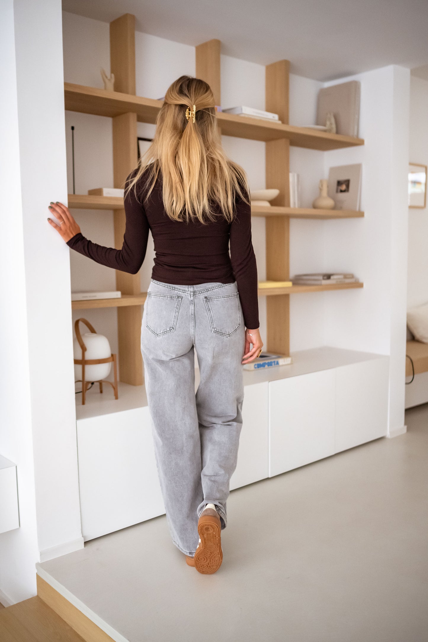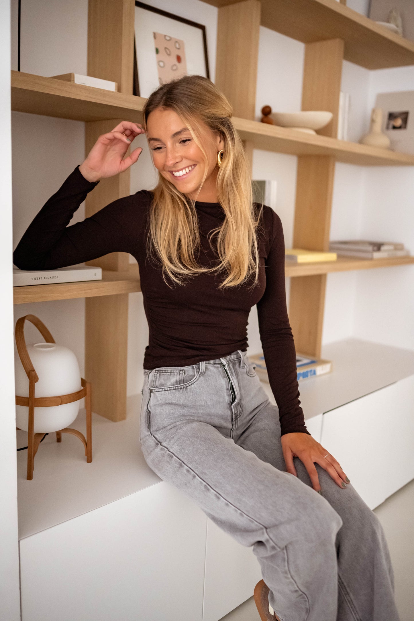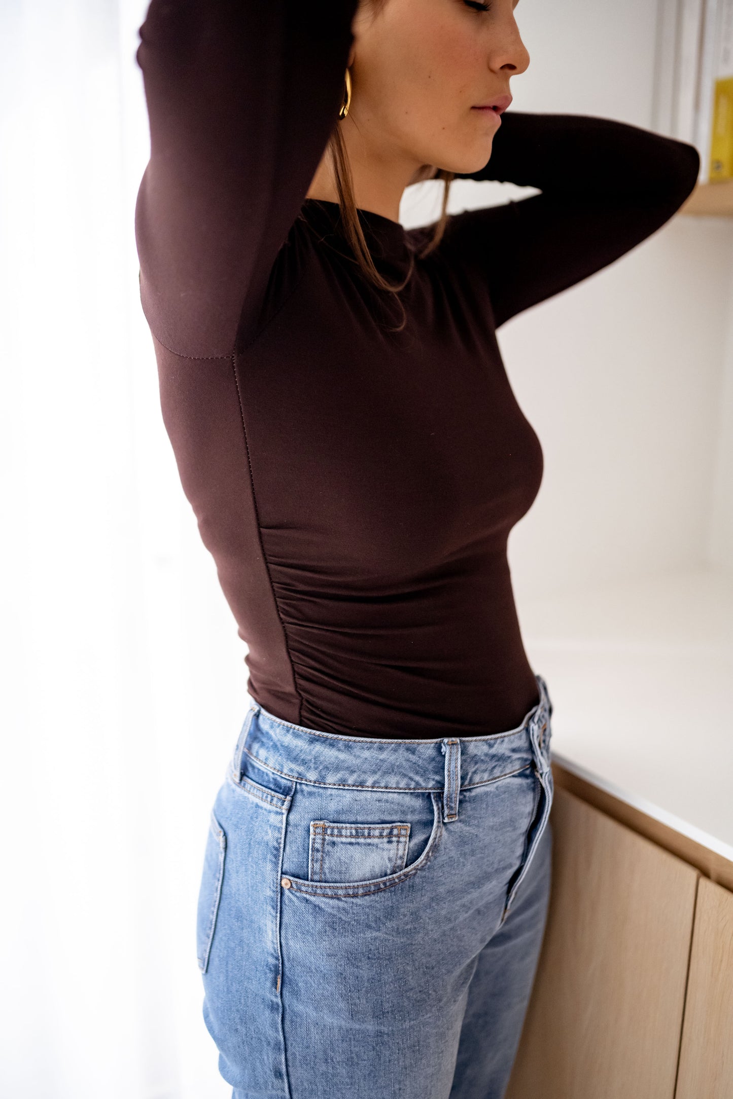 - The Chocolate Clara T-Shirt is a sleek and versatile essential. Designed with a classic crewneck and long sleeves, its tight fit creates a flattering silhouette that pairs effortlessly with any outfit. A timeless staple for a refined look.