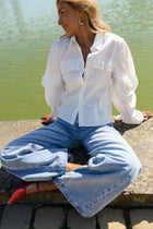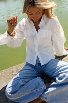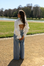 Airy and full of detail, the White Will Shirt draws attention with its open-back design, finished with a tie that adds both shape and a delicate focal point. Ruffles along the front and back create soft movement, while the slightly sheer fabric enhances its light, effortless feel. The White Will Shirt is a piece that balances subtle drama with everyday elegance.