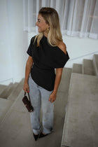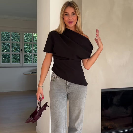 The Black Maria Blouse is the perfect mix of bold and refined. Designed with a striking one-shoulder cut and gentle ruching, it creates an hourglass silhouette. The side zipper ensures a smooth fit, while its slightly shaping design adds a touch of understated allure.