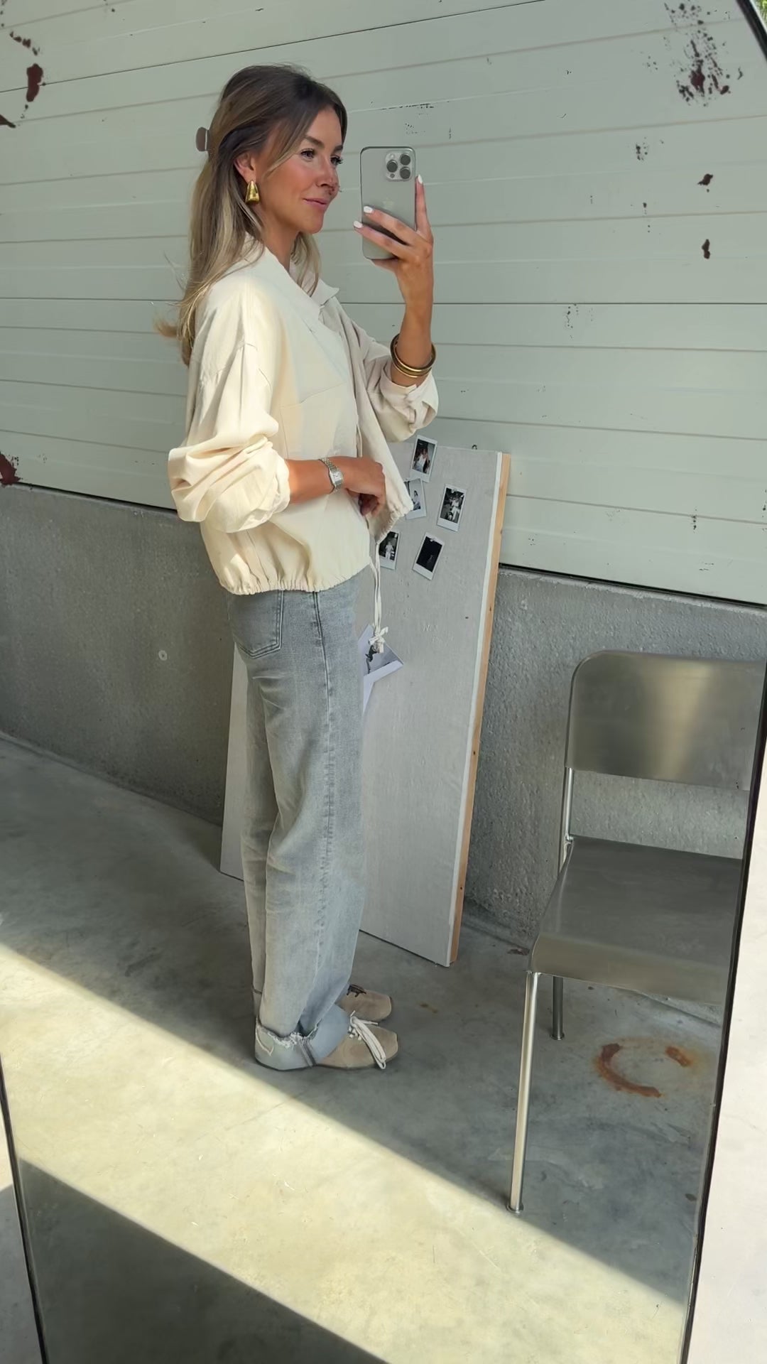 This denim top is just what I needed for fall. A little oversized but adjustable with the drawstring. Not too stiff, even more comfortable after washing 🙌🏼