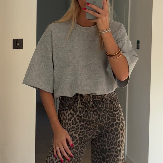 Keep it simple and stylish with the Grey Flo T-shirt. Designed with short sleeves and a classic round neckline, it features a slightly thick fabric that holds its shape beautifully. The loose fit makes it a comfortable everyday essential that pairs effortlessly with any outfit.
