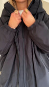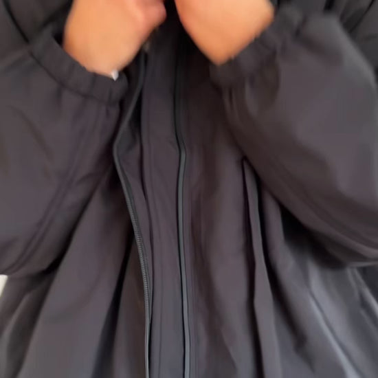 Stay protected in style with the Black Manuel Coat. This loose-fitting, waterproof coat features a convenient zipper, side pockets, and a hood for added practicality. Perfect for rainy days or layering over casual outfits, it combines functionality with a modern, relaxed silhouette.