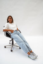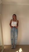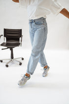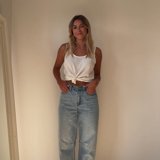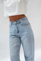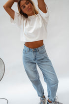 The Blue Brandy Jeans are part classic mom-fit jean, part trendy barrel jean with a slightly loose cut for relaxed comfort. Finished with front and back pockets, belt loops, and a button-and-zipper closure, they’re a versatile denim essential for everyday wear.