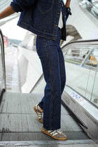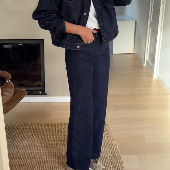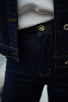Your go-to denim just got an upgrade. Our Chelsea jeans are high-rise and boast a gentle flare for a modern silhouette. Accented with distinctive wavy topstitching and subtle details like a flower-shaped button, they offer both style and utility.