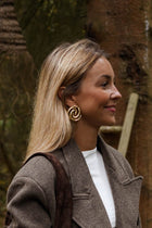 Crafted in stainless steel with a gold finish, these statement earrings feature a unique, sculptural swirl design that catches the light beautifully. Perfect for elevating both casual and dressy outfits.