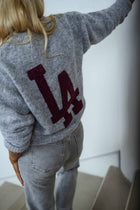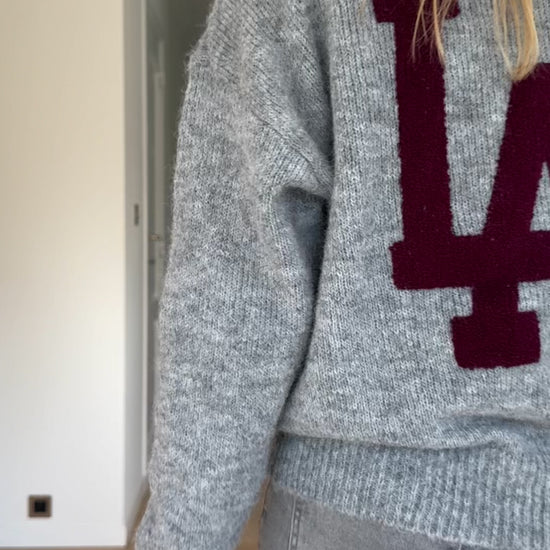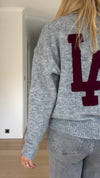 Add a sporty edge to your look with the Gray Vista Sweater. Featuring a bold burgundy “LA” logo on the chest and back, this cozy piece blends casual comfort with a cool, laid-back vibe. The round neckline and long sleeves make it a timeless everyday favorite.