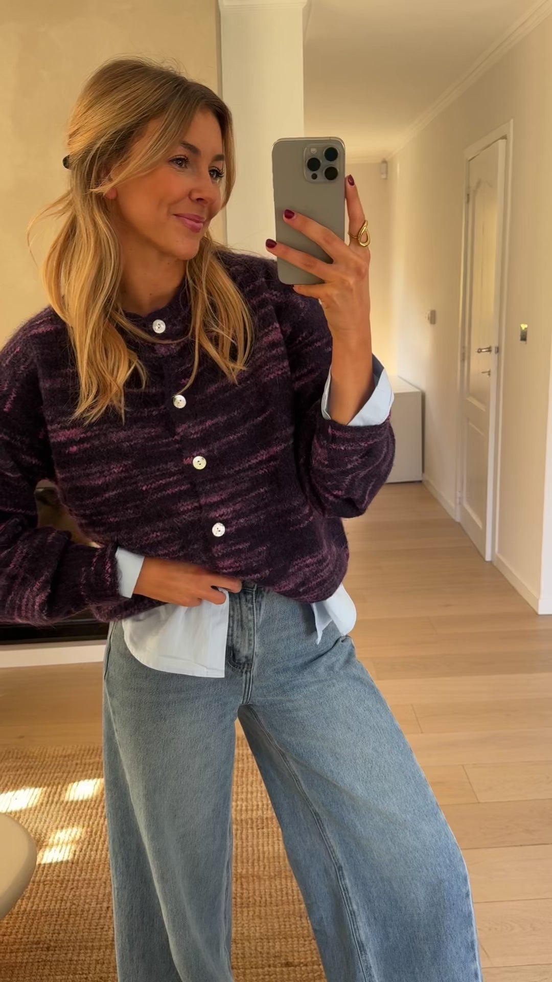 Bring depth and style to your layers with the Purple Armen Cardigan. Featuring a crew neck, long sleeves, and a button-up silhouette, this cardigan showcases a dark purple gradient for a bold, modern look. Perfect for pairing with casual or dressed-up outfits, it adds a touch of sophistication to any ensemble.