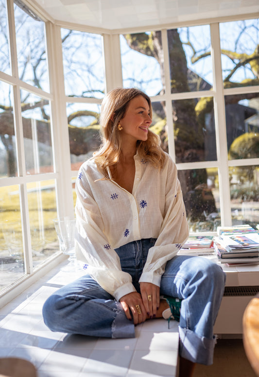 Ecru Grace Shirt with Red and Pink Floral Pattern