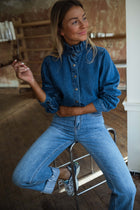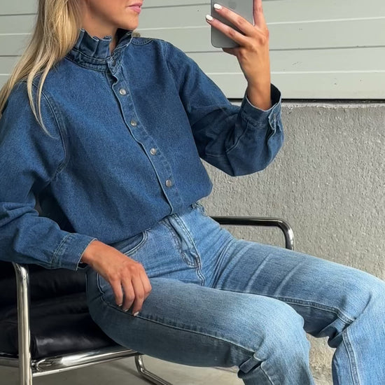 The Blue Gabin Overshirt gives denim a refined twist. Designed with a Victorian collar, long sleeves, and snap buttons, it balances structure with ease in a slightly loose fit. A versatile layer that transitions effortlessly from casual days to elevated looks.