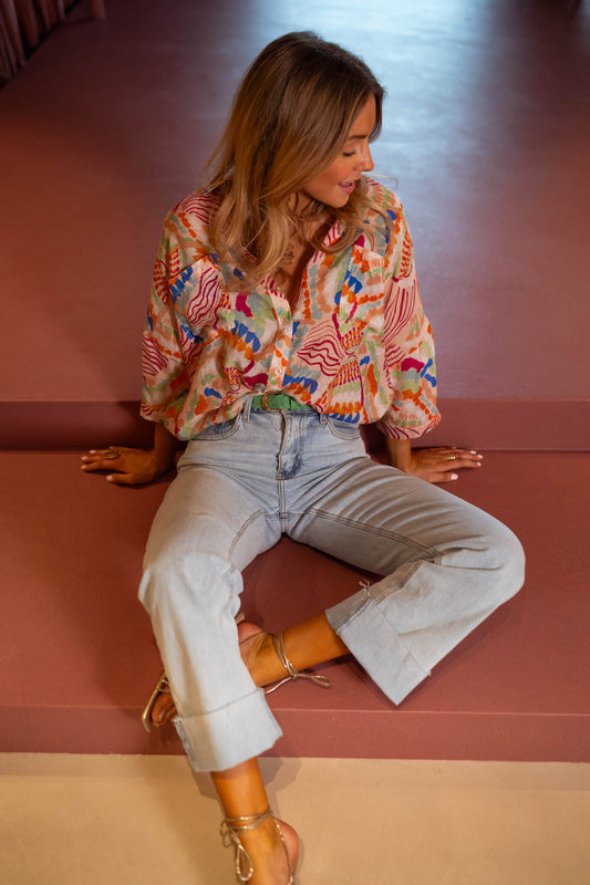 Beige and Pink Striped Linen-Effect Bertha Shirt