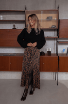 This skirt looks amazing and can be worn in multiple ways. I wore an oversized sweater and a thinner camisole with a cardigan, and it complemented both looks incredibly. Rich fall colors that can also be worn through winter with tights for more warmth. LOVE it!