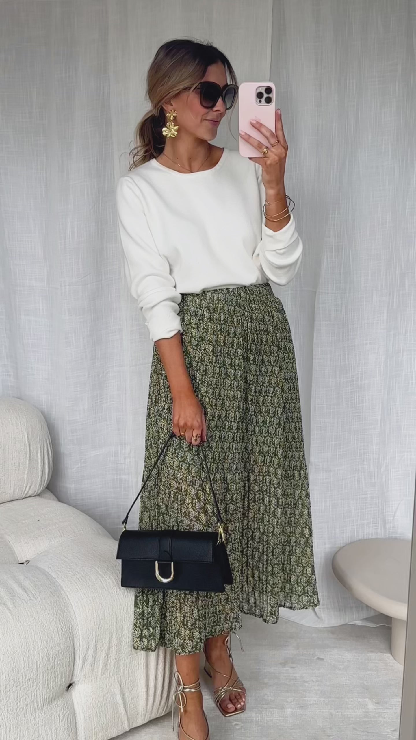 I ordered this skirt after seeing it on a friend and it is such a staple piece. I wore it for Thanksgiving with the exact same sweater in the pictures. The elastic waistband was perfect to hide any food belly and also leave me feeling comfortable. The gold speckle detail throughout was a nice elevated touch and picked up nicely in pictures.
