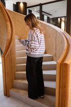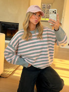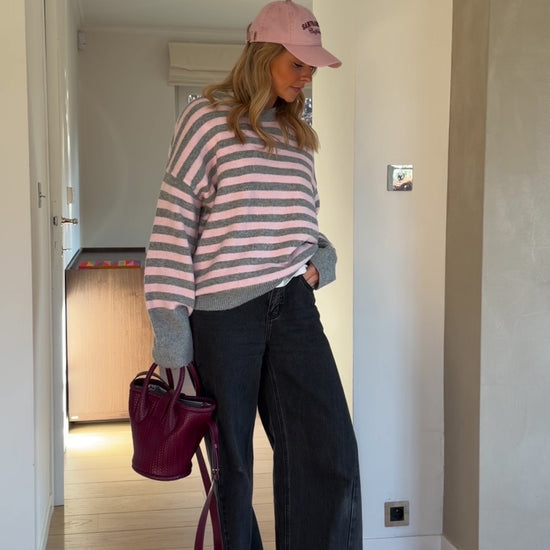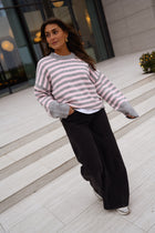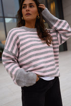 Soft contrast meets everyday ease in the Grey and Pink Emilie Sweater. Delicate pink stripes run across a grey base, giving this piece a fresh, modern feel. Finished with a classic crew neckline, long sleeves, and a gently relaxed fit, it’s the kind of sweater that slips effortlessly into both casual looks and layered outfits.