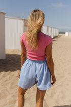 - Our models are also wearing the Blue Erica Short and the White Erica Shorts