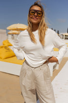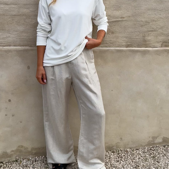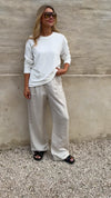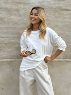 • Simple, soft, and endlessly wearable. The White Johana T-shirt features long sleeves, a classic crewneck, and a slightly oversized fit that keeps things comfortable and effortless all day long.