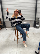 Grey and Blue Striped Davis Polo Sweater