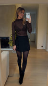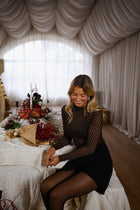 Playful and chic, the Brown Polka Dot Jost Blouse brings a refined touch to your look with its sheer finish and black velvet polka dots. The crew neck and long sleeves keep the silhouette classic, while the form-fitting cut flatters your shape. A standout piece that adds effortless charm to any outfit.