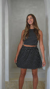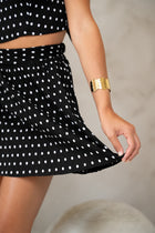 The Black Polka Dot Lena Skirt is a playful short skirt designed for effortless style. With a comfortable elasticated back, it fits easily while allowing freedom of movement. Fully opaque and unlined, its fluid fabric drapes beautifully, creating a light, breezy silhouette that’s perfect for casual days or chic evenings out.