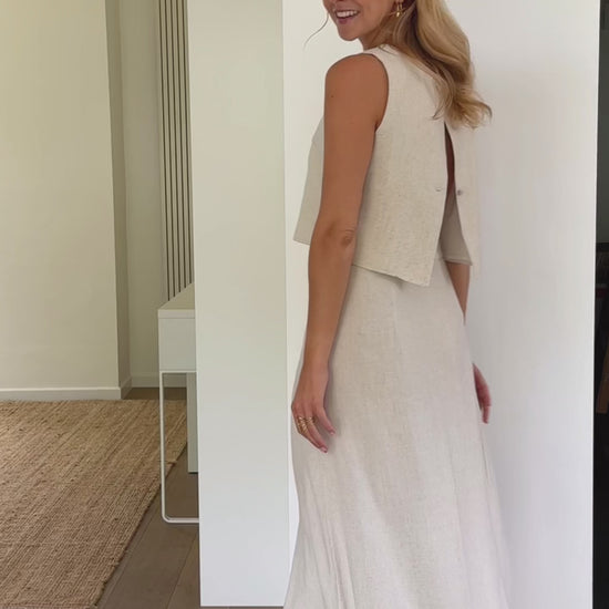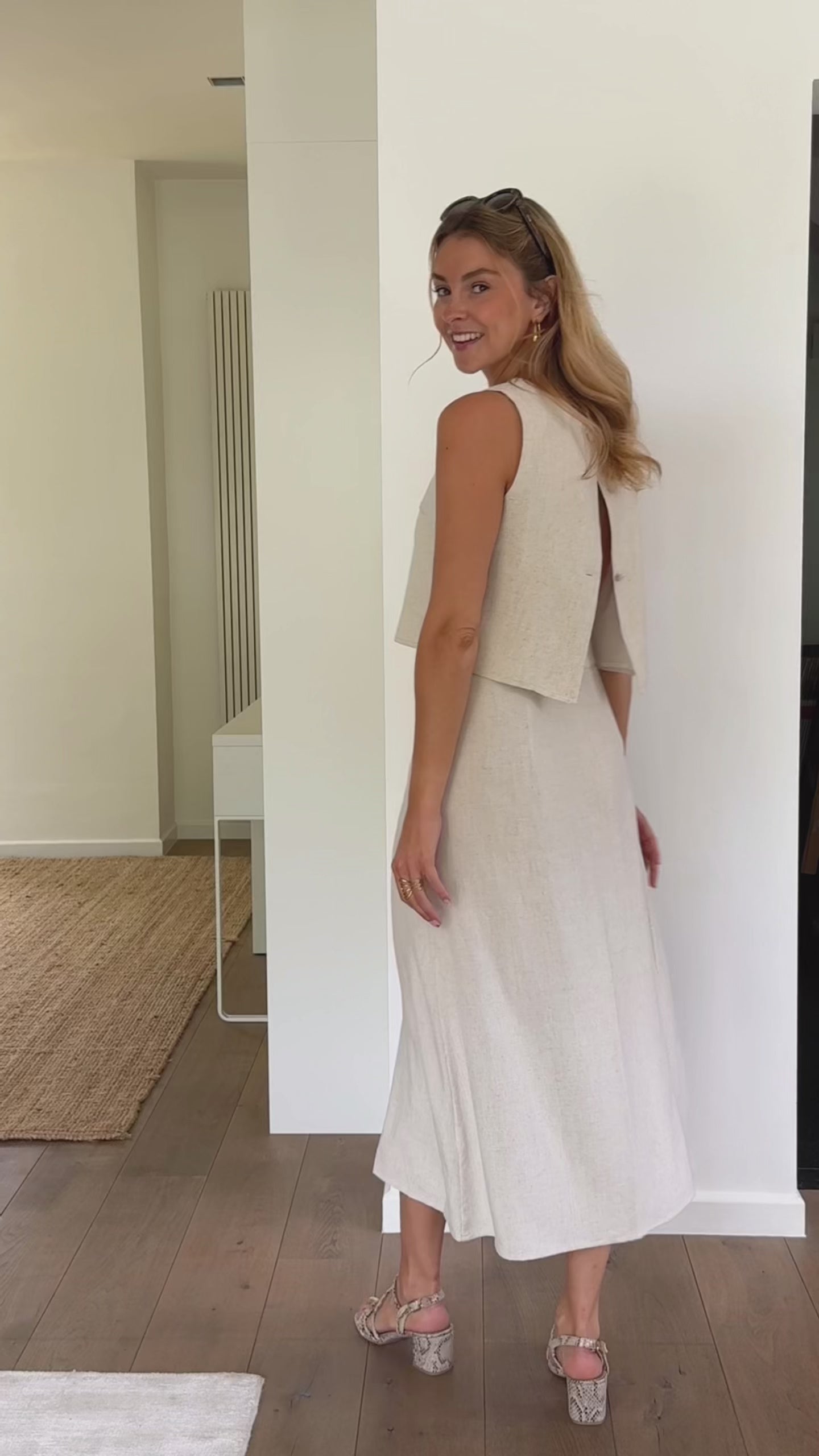Light, easy, linen top. Pairs perfectly with the skirt.