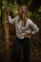 Stay cozy and chic with the Beige Milene Cardigan. Designed with a round neck, long sleeves, and a button placket, it combines comfort with timeless style. The two front pockets add a practical and charming touch to this versatile piece.
