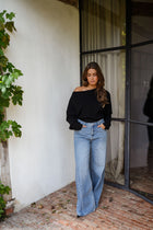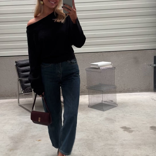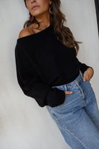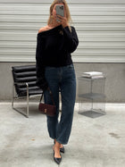 Turn heads with the Black Richard Sweater. Featuring an off-the-shoulder collar and a softly draped front, this slightly cropped, loose-fit knit blends comfort with modern allure—perfect for effortlessly chic looks.