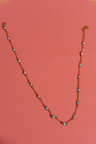 - Crafted from stainless steel, this necklace showcases a turquoise eye pendant with a radiant golden finish, perfect for adding a touch of elegance to your look.