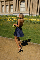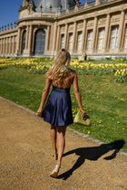 Smooth and luminous, the Blue Kimie Dress stands out with its satin-effect finish that catches the light with every movement. The front draping adds soft dimension, balanced by a fluid, short silhouette that moves effortlessly. An open back brings a striking contrast, while the side zipper ensures a clean fit. Unlined for a light feel and made in Italy, the Blue Kimie Dress is a modern piece with an elegant edge.