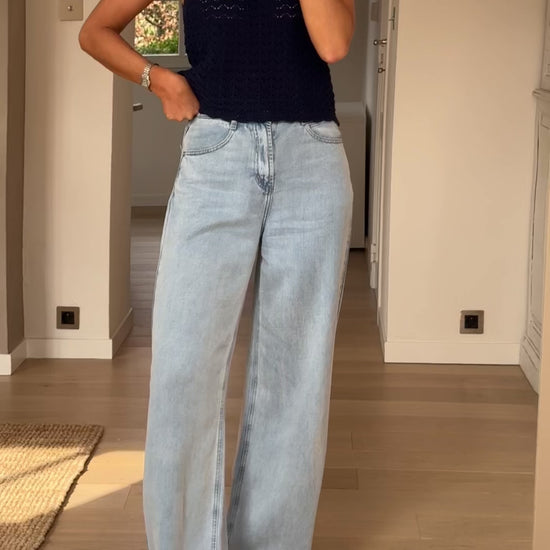 - The Blue Sely Top brings a fresh twist to casual wear. With its sleeveless crochet design, classic crewneck, and a slightly cropped silhouette, it's an easy choice for sunny days or effortless layering.