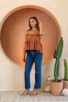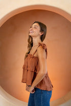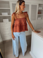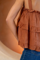 The Brick Malvy Top brings effortless charm with its adjustable tie straps and straight neckline. A soft ruffle detail adds a feminine touch, while the lined, non-transparent fabric keeps it both chic and practical. With its fluid, slightly loose fit, this top is perfect for warm days and easy layering.