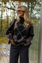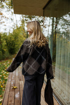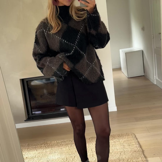 The Felix sweater epitomizes refined simplicity with its elegant high collar and textured Jacquard pattern. Designed for warmth and style, the generous long sleeves offer comfort through cooler months, while the timeless brown and black checkered palette complements any wardrobe effortlessly.