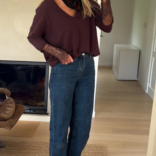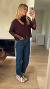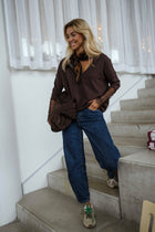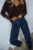 The Brown Kala Sweater combines softness with subtle femininity. Featuring a flattering V-neckline and delicate lace detailing along the sleeves, it’s the perfect blend of cozy and refined. Its soft knit and long sleeves make it an easy choice for both everyday wear and elevated moments.