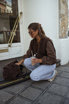- Our models are also wearing the Chocolate Grain Blouse, the Pink Patterned Natacha Shirt, the Red Basha Dress, and the Grey Seba Jeans