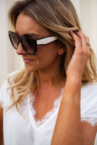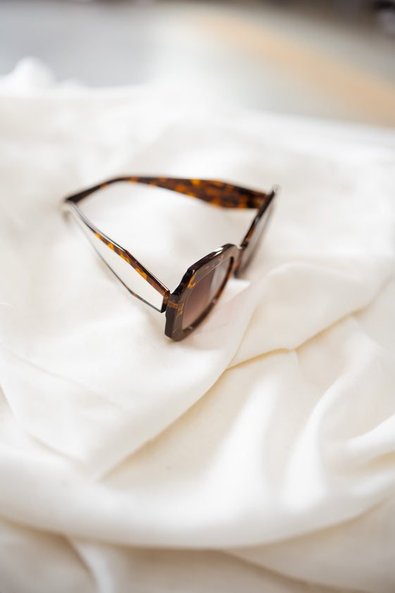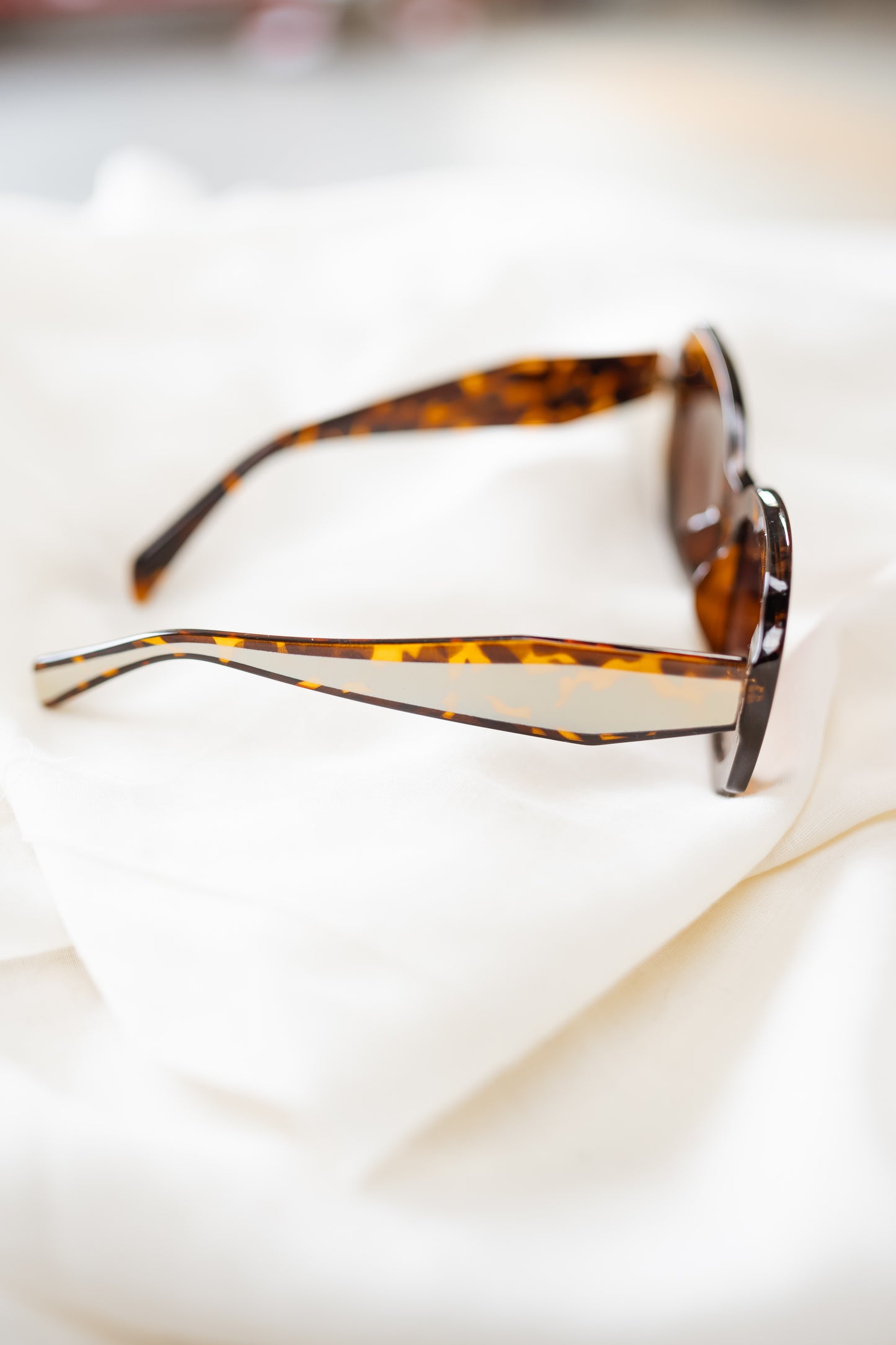 - Elevate your style with the Brown Tortoiseshell Chad Sunglasses. Featuring a classic brown tortoiseshell frame and complemented by ecru details on the temples, these sunglasses offer a chic, sophisticated look that pairs well with any ensemble.