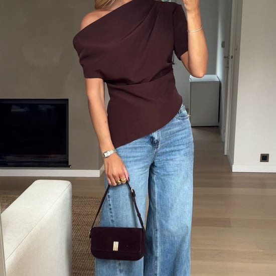 The Chocolate Maria Blouse is a chic, Italian-made statement piece. Featuring a one-shoulder design and a side zipper, it offers a modern, flattering silhouette with slight gathers for added texture. Slightly fitted and unlined, this blouse drapes elegantly while remaining lightweight and comfortable. Perfect for evening occasions or elevated daytime looks.