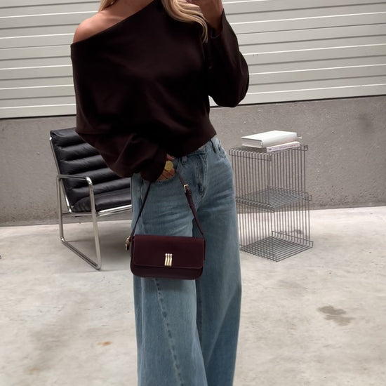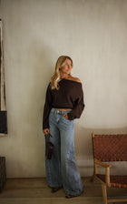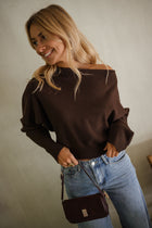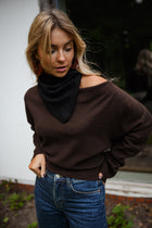 Embrace laid-back style with the Chocolate Richard Sweater. Featuring an off-the-shoulder collar and a gently draped front, this loose, slightly cropped knit adds a warm and modern touch to any outfit.