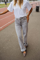 • Step into effortless comfort with the Gray Seba Jeans. Designed with a high-rise fit and belt loops for a versatile look, these jeans are made from elastic fabric that offers all-day comfort. The unique double edges, left not sewn for a laid-back finish, add a distinctive touch. Featuring front and back pockets, these jeans are as practical as they are stylish.