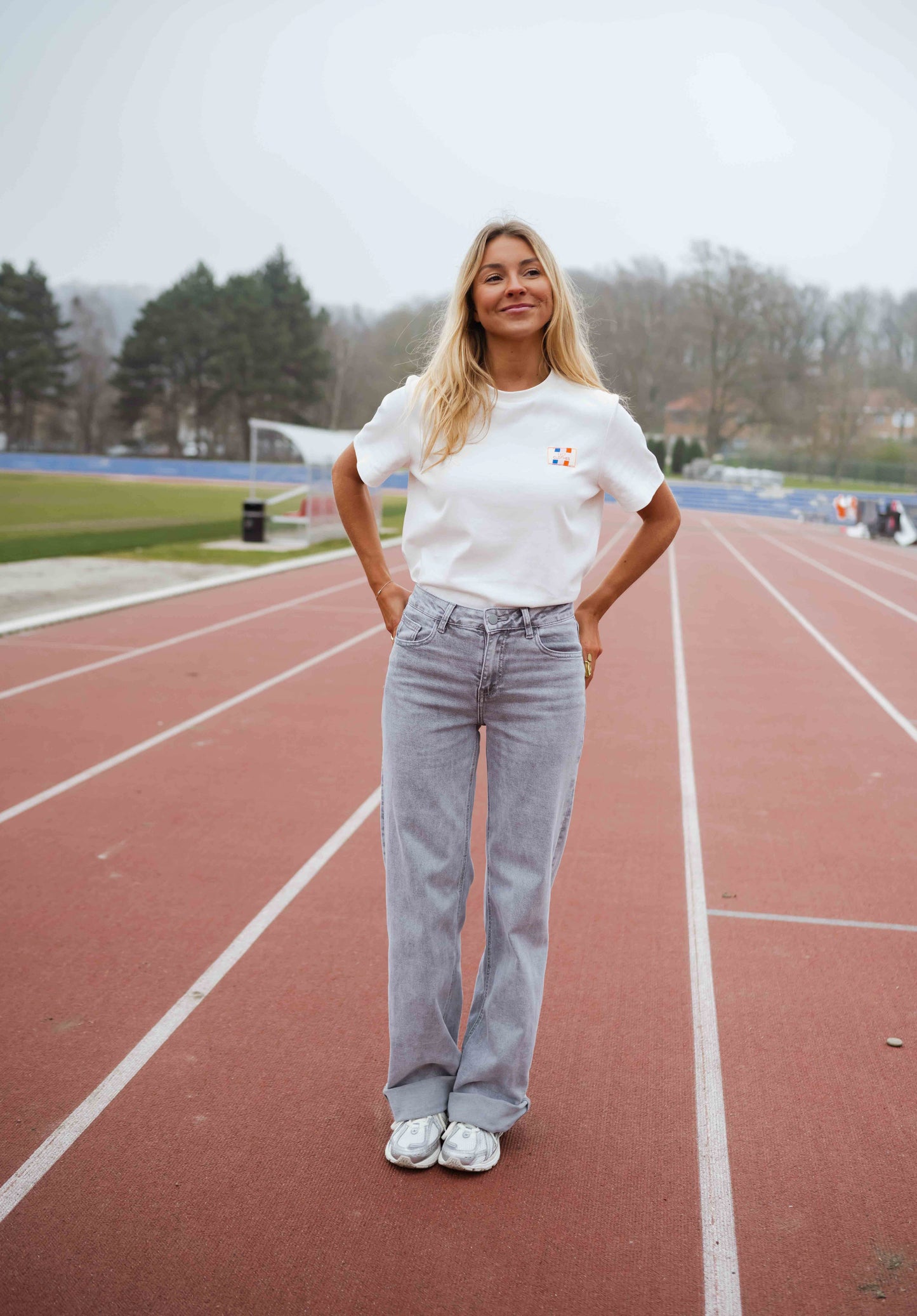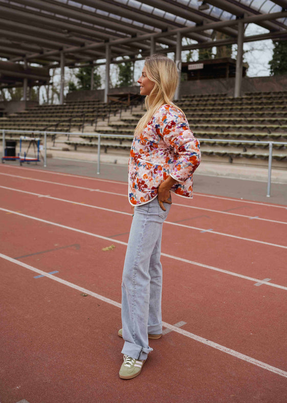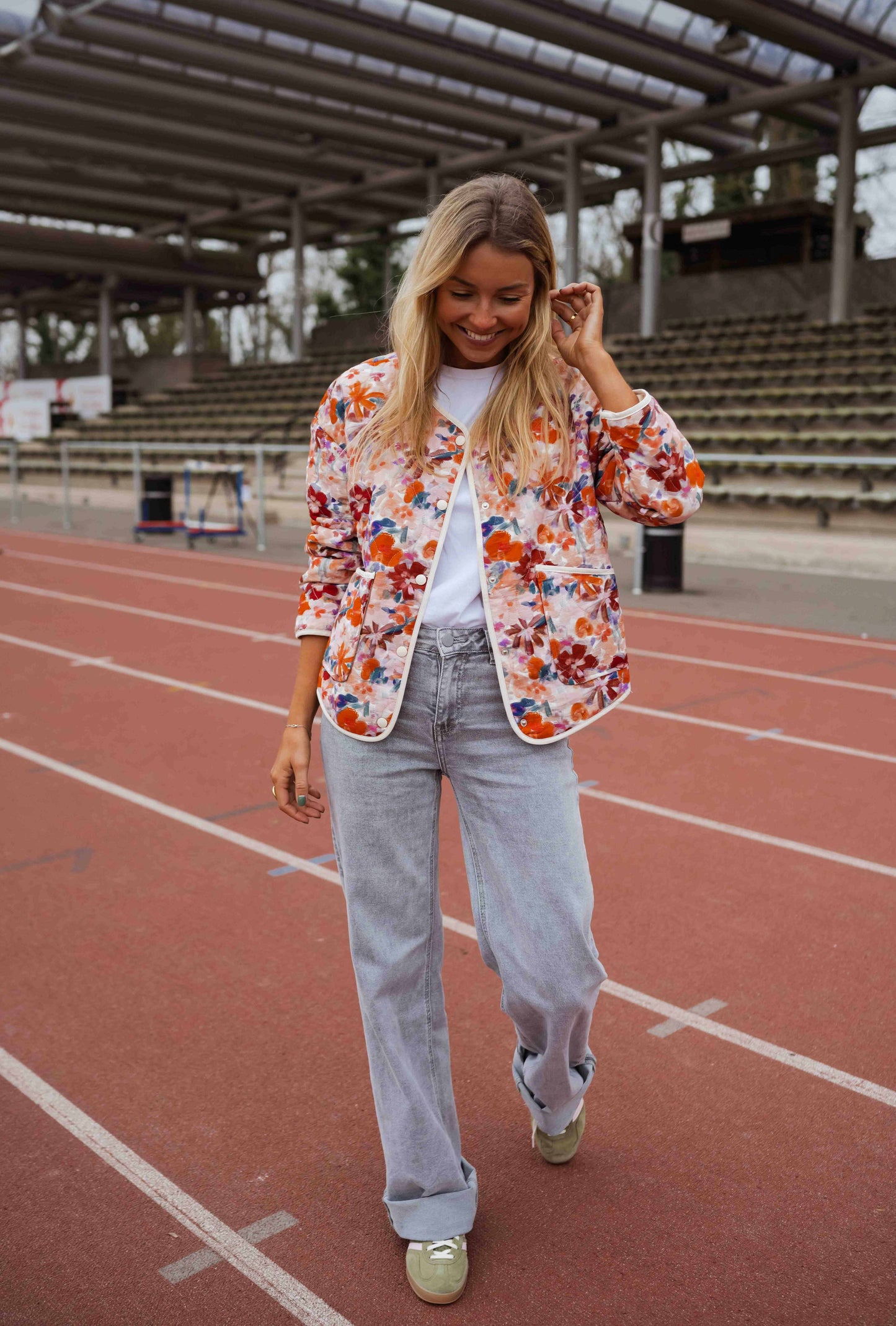 • Our model is also wearing the White Manon T-Shirt, the Floral Julie Jacket, and the White Jane T-shirt