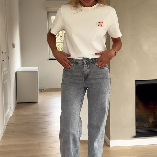 - Our model is also wearing the Floral Julie Jacket, and the White Jane T-shirt