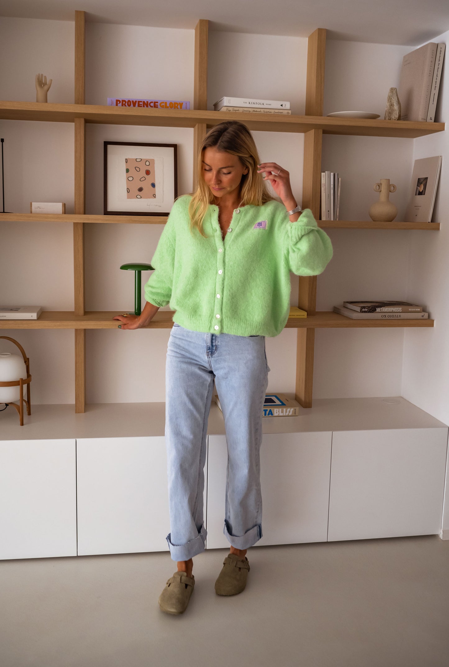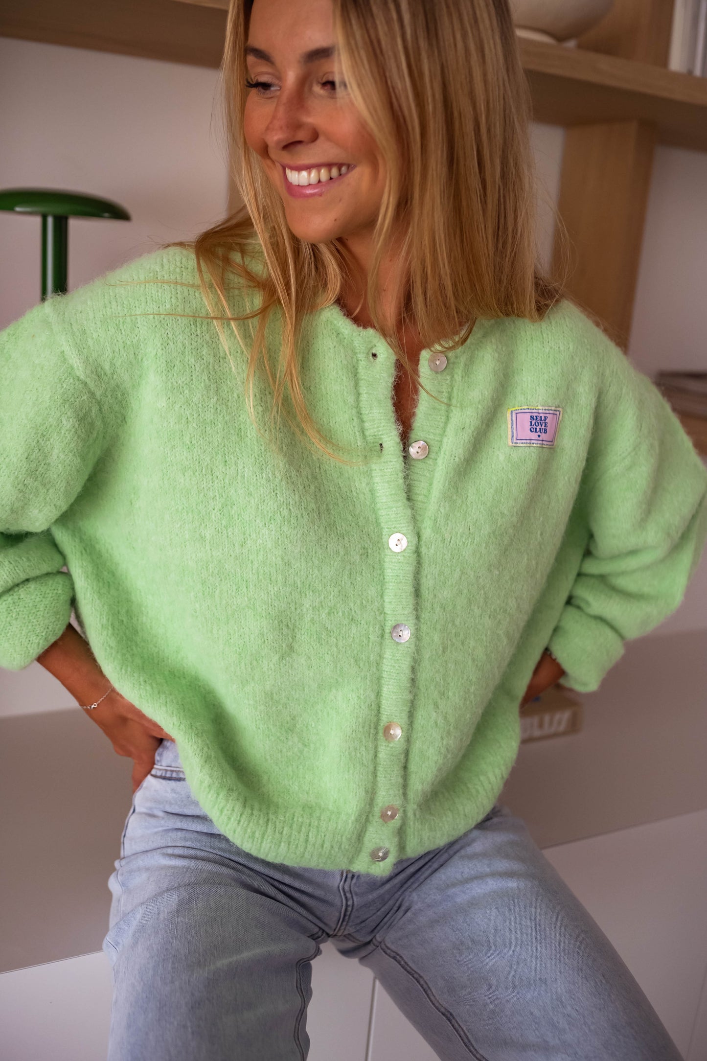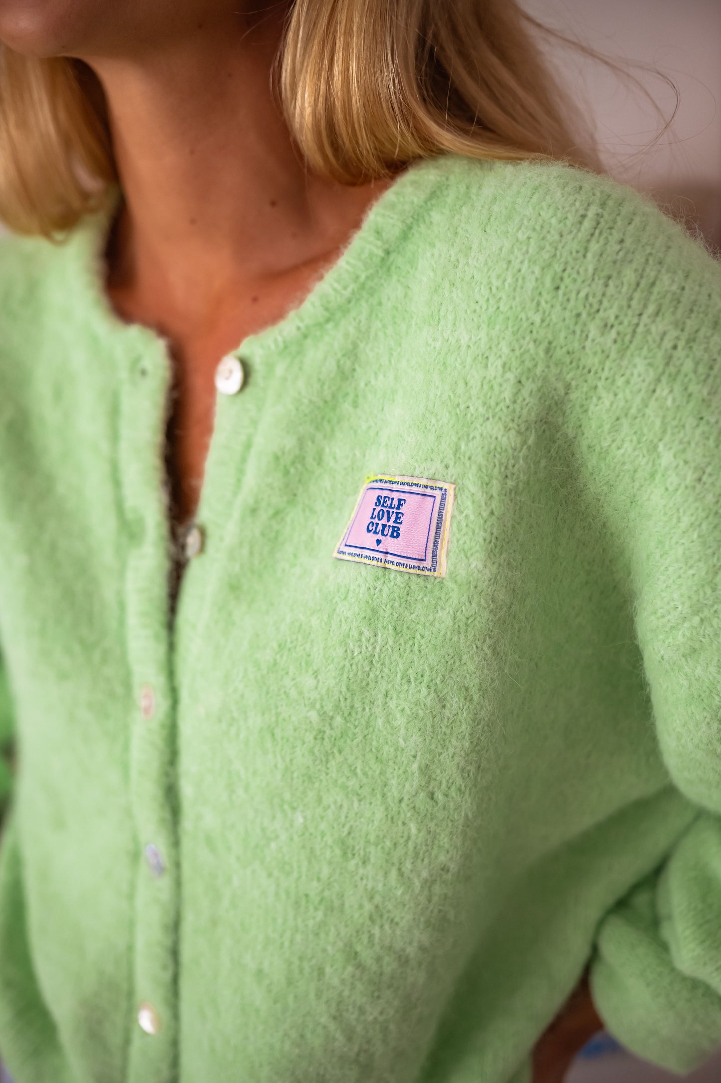 - Soft, slightly loose fit with pearly buttons all along, this Green Harris Cardigan features the label "Self Love Club - Easy Clothes" and long sleeves for a cozy and stylish look that will make you feel confident and comfortable!
