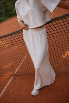Minimalist and easy to style, the Grey Pauline Skirt offers effortless comfort with its soft fabric and straight cut. Designed with an elasticated waist for a flexible fit, this unlined long skirt drapes beautifully—perfect for both casual and elevated looks.
