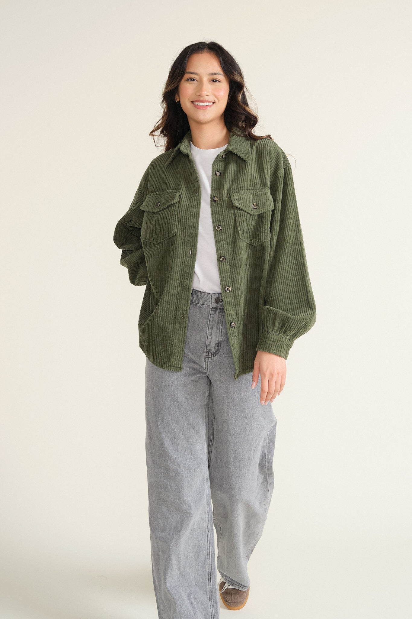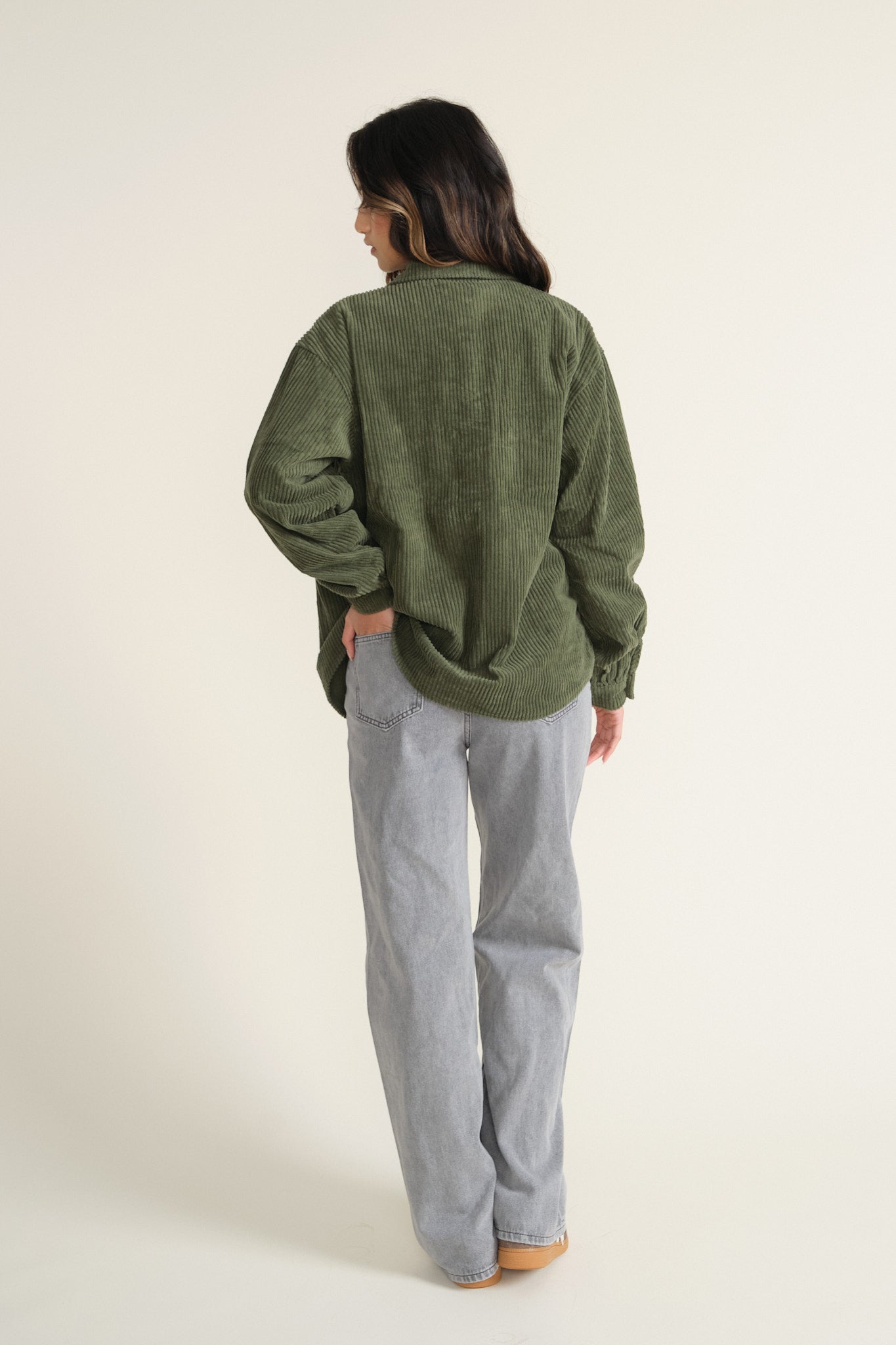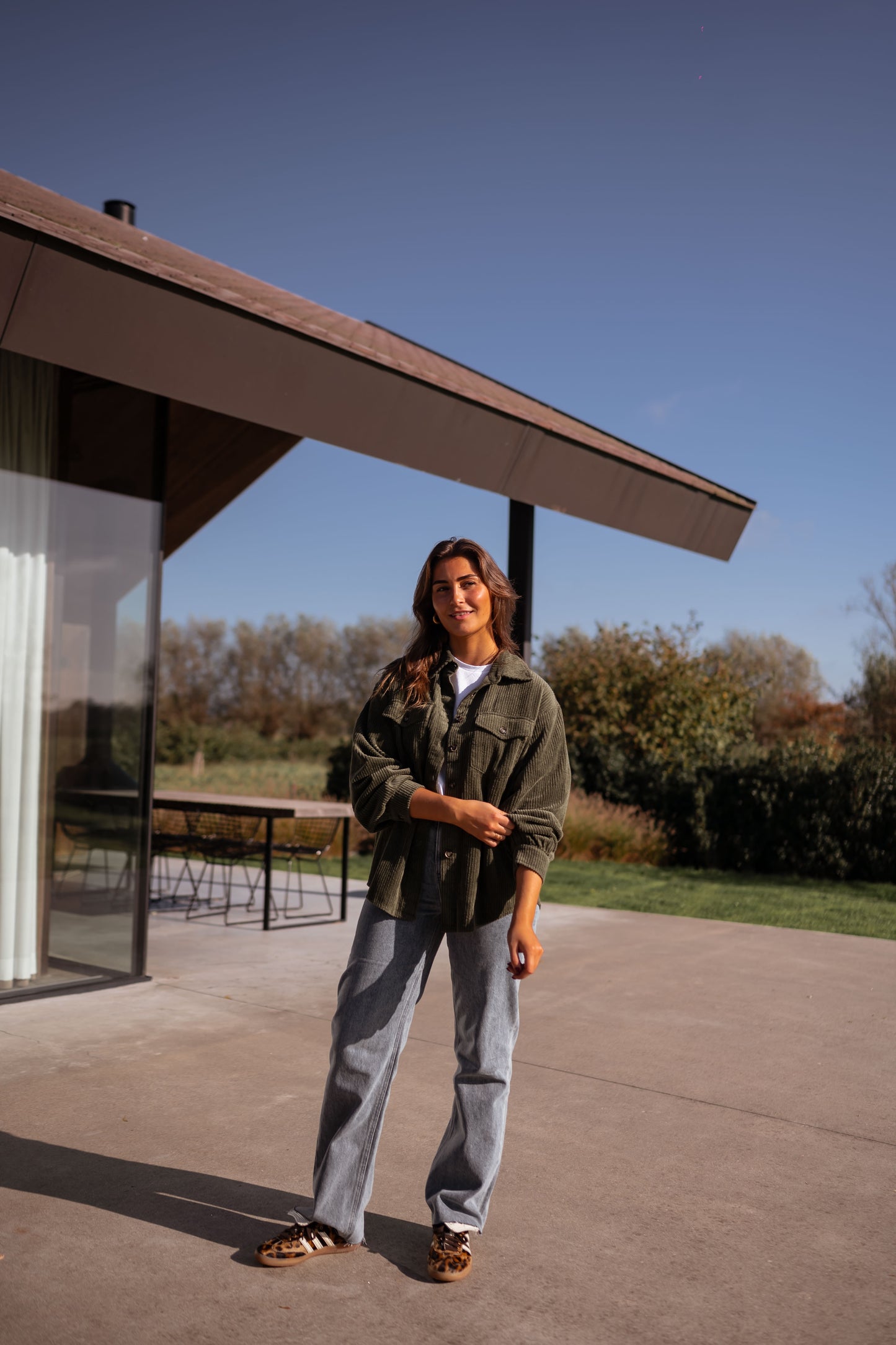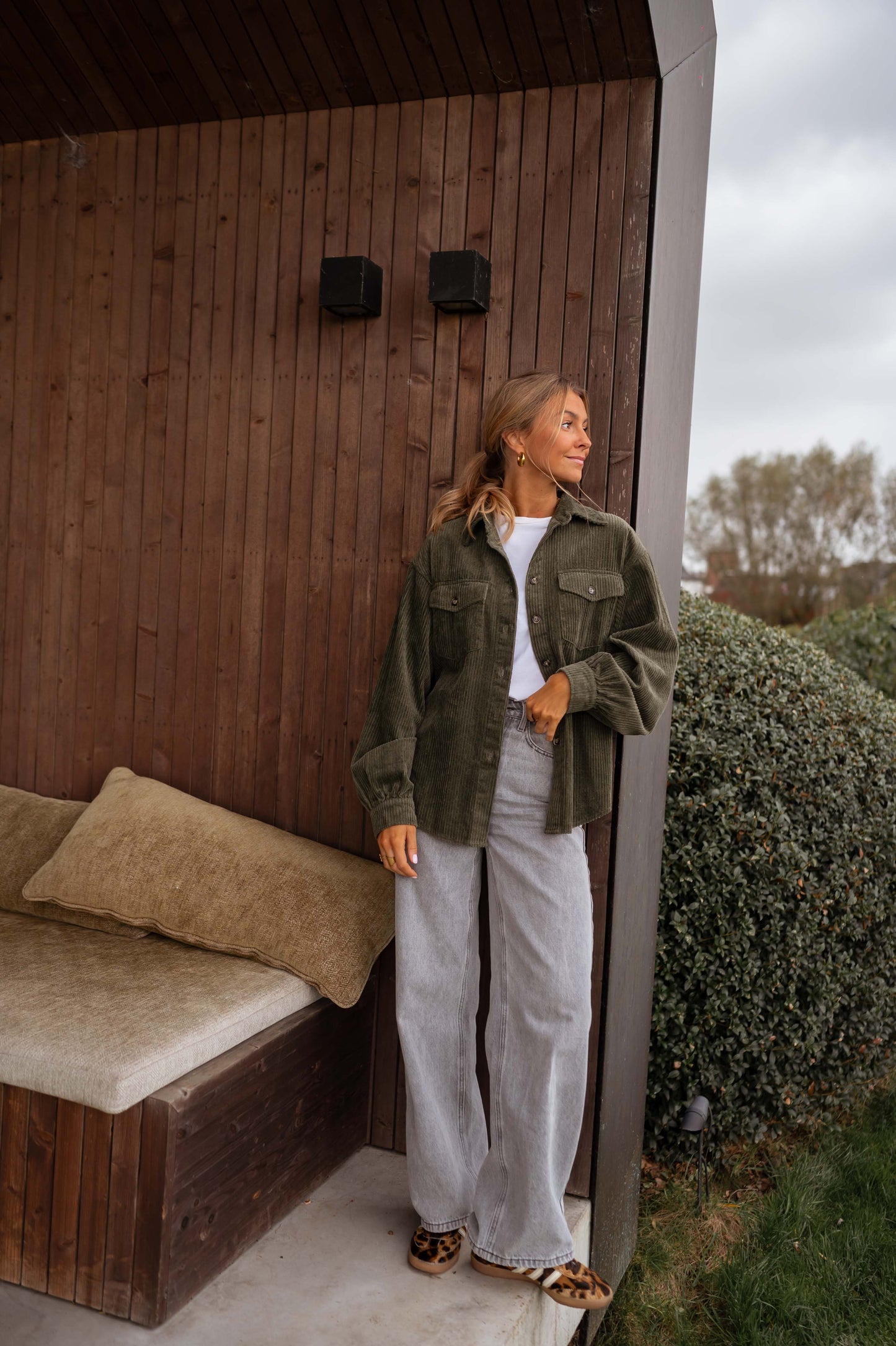 - The Khaki Louana Overshirt is made from soft corduroy fabric with a flowy, loose fit for ultimate comfort. Featuring detachable buttons, this versatile piece can be styled in multiple ways, perfect for layering or wearing solo. A must-have for casual and smart-casual outfits, offering both style and practicality in one shirt.
