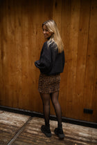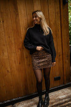 The Leopard Hopa Skirt features a suede-effect fabric with a bold leopard print, offering a soft feel and stylish texture. This short skirt is unlined, slightly fitted, and made from a stretch material for comfort and ease of movement. Finished with a discreet side zipper for a smooth look.
