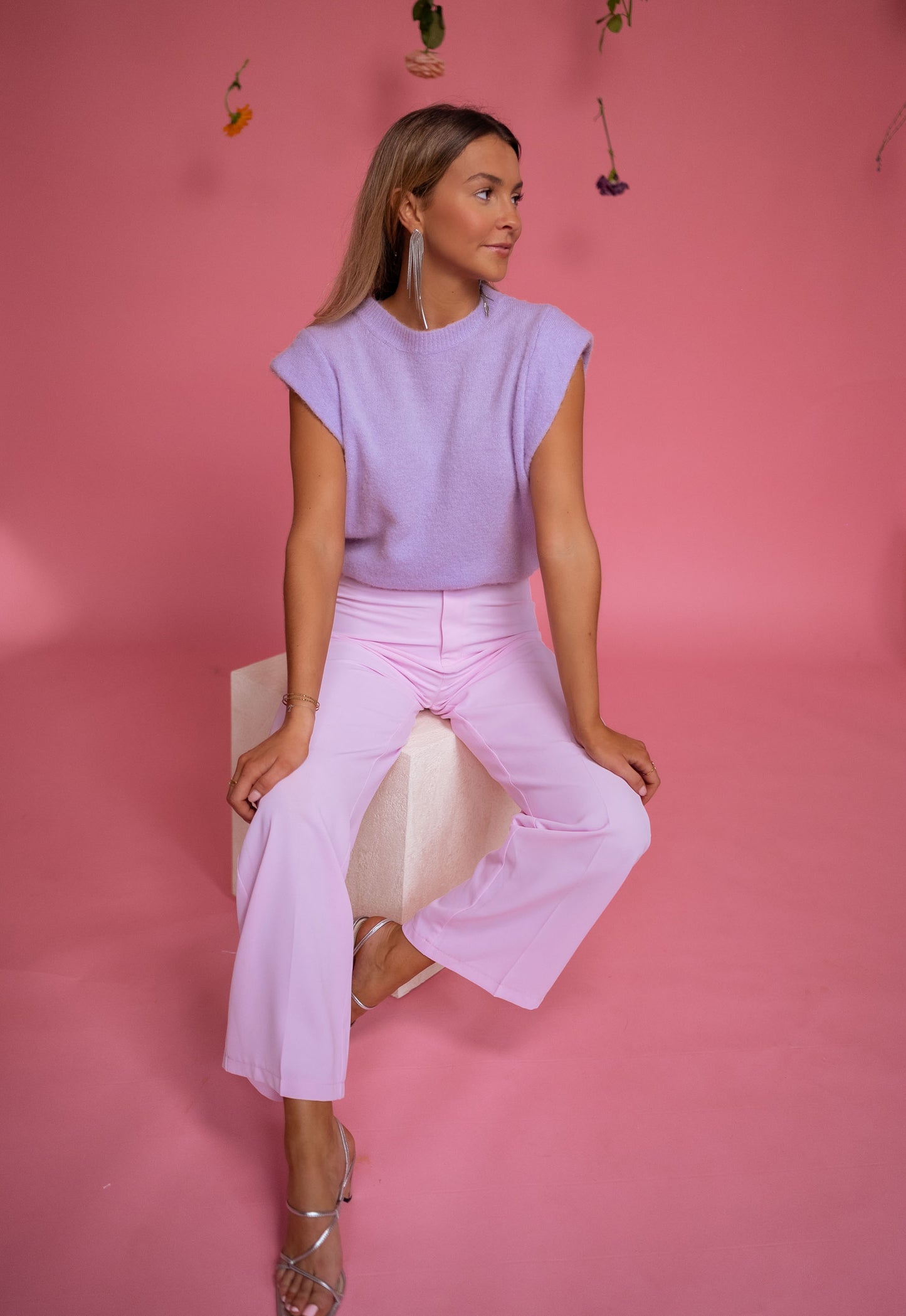 - Beautiful lilac sweater features short sleeves and a round neckline. The slightly loose fit of the sweater creates a comfortable and relaxed look, making it perfect for casual occasions.