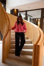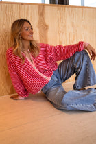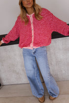 Stripes take center stage on the Pink and Red Striped Glad Cardigan, bringing a fresh, lively twist to an everyday essential. Designed with a clean crew neckline and detachable buttons, it offers styling flexibility while maintaining a relaxed, slightly loose silhouette. The soft knit drapes comfortably, making it ideal for layering or wearing on its own when you want an easy pop of color.