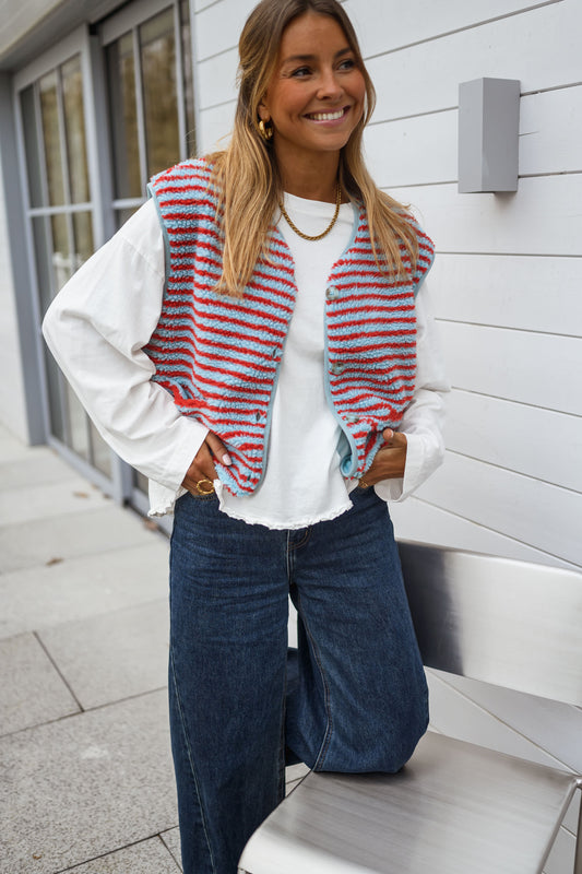 Grey and Burgundy Harris Cardigan