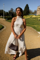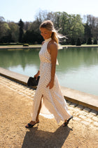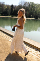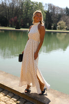 A high neckline sets a refined tone for the Polka Dot Monie Maxi Dress, balanced by an open back that adds contrast and lightness. The long, flowy silhouette moves effortlessly, enhanced by a slit at the hem for added ease. An elasticated back ensures a comfortable fit, while the all-over polka dot pattern brings a timeless touch. Unlined and airy, the Polka Dot Monie Maxi Dress feels both elegant and relaxed.