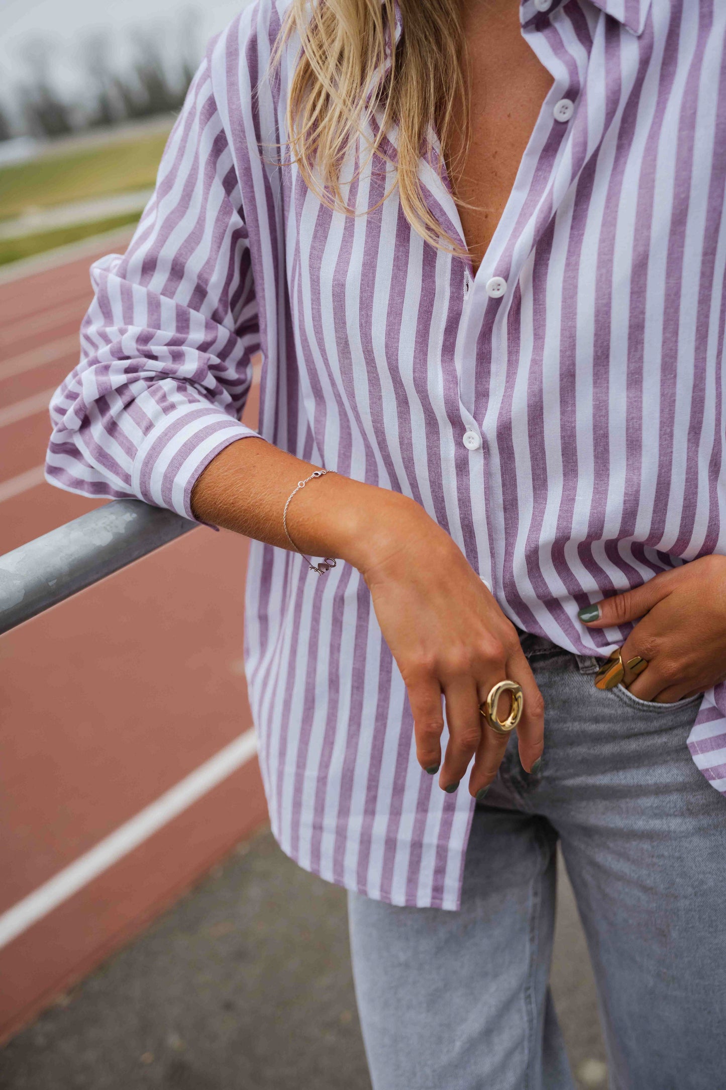 Purple and White Striped Meha Shirt
