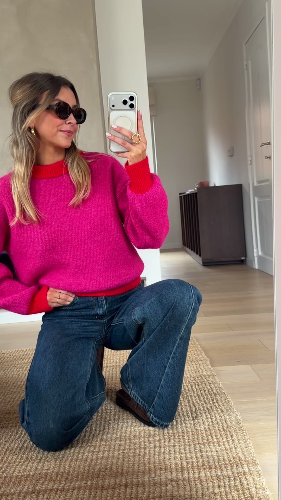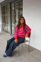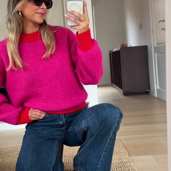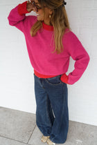 Bring bold color to your everyday look with the Red and Pink Victoire Sweater. Designed with a classic crew neck and long sleeves, it features striking red trim at the cuffs and neckline for a refined, stylish touch. Soft and cozy, this sweater is perfect for layering or wearing on its own, making a vibrant statement wherever you go.