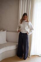 The White Nuala Sweater proves that simplicity can still make a statement. Crafted from soft, comfortable fabric, it features long sleeves and a refined side shoulder opening that adds a hint of intrigue. Elegant and fresh, it’s the perfect balance of cozy and chic.